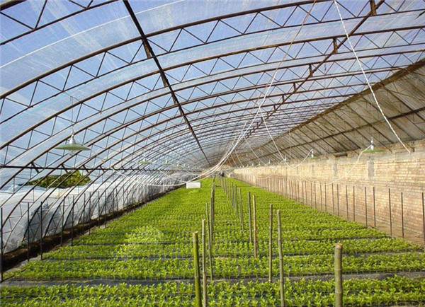前坡面夜間用保溫被覆蓋,東、西、北三面為圍護(hù)墻體的單坡面塑料溫室,統(tǒng)稱為日光溫室。其雛型是單坡面玻璃溫室,前坡面透光覆蓋材料用塑料膜代替玻璃即演化為早期的日光溫室。日光溫室的特點(diǎn)是保溫好、投資低、節(jié)約能源,非常適合我國經(jīng)濟(jì)欠發(fā)達(dá)農(nóng)村使用。