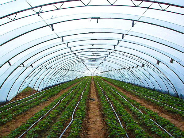 前坡面夜間用保溫被覆蓋,東、西、北三面為圍護(hù)墻體的單坡面塑料溫室,統(tǒng)稱(chēng)為日光溫室。其雛型是單坡面玻璃溫室,前坡面透光覆蓋材料用塑料膜代替玻璃即演化為早期的日光溫室。日光溫室的特點(diǎn)是保溫好、投資低、節(jié)約能源,非常適合我國(guó)經(jīng)濟(jì)欠發(fā)達(dá)農(nóng)村使用。